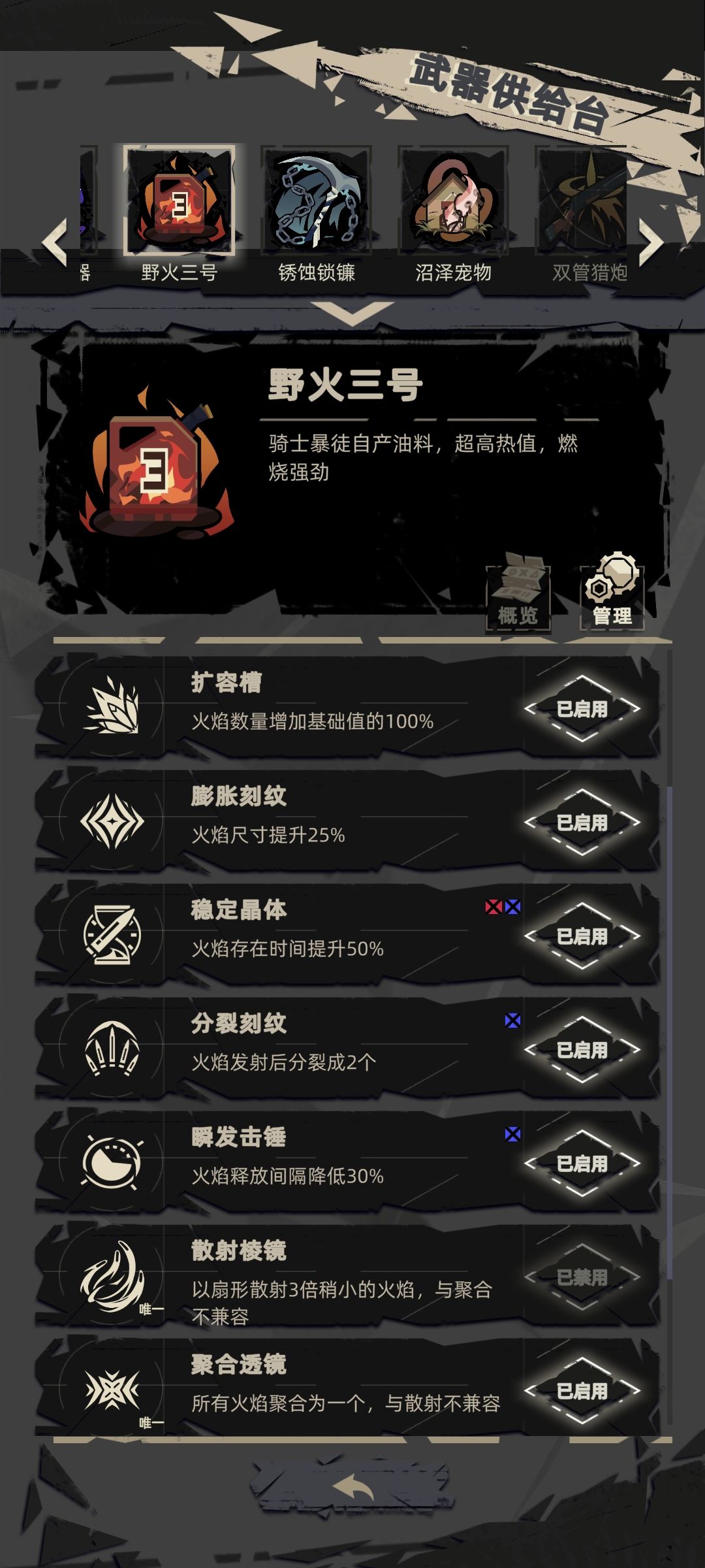 武器的配件同理,最少可以留6个配件,在狂怒期间升级如果祝福满了话,100%出你想要的配件!(影响力3级升级选项为4+3最多7个选项)