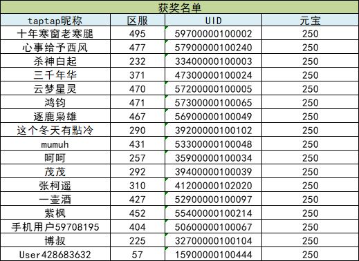 1、每个游戏角色UID只能获得一次奖励,活动时间结束后会在本贴公布获奖名单和元宝池数;