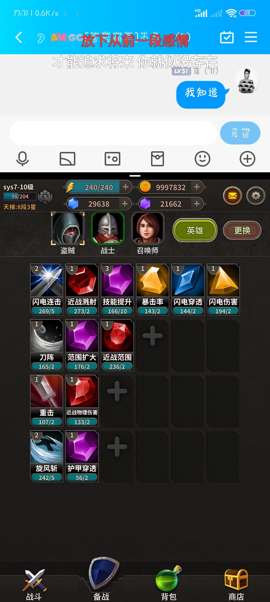 盗贼或战士,战士最后一件可以选择攻速剑
