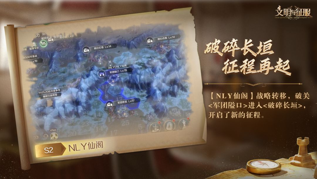 在【统御九天】与【曌.星月海】的顽强防守下,【NLY仙阁】并不打算全力突破,而是战略性转移,从<祈祷隘口>破关进入<橡树山脉>,挂上了【华夏||龙城】的副盟,直接飞地<军团隘口>附近宣城。此战【NLY仙阁】联盟成员光调兵就用了将近3小时,不过最终也是有惊无险的拿下,进入<破碎长垣>开启了新征程。