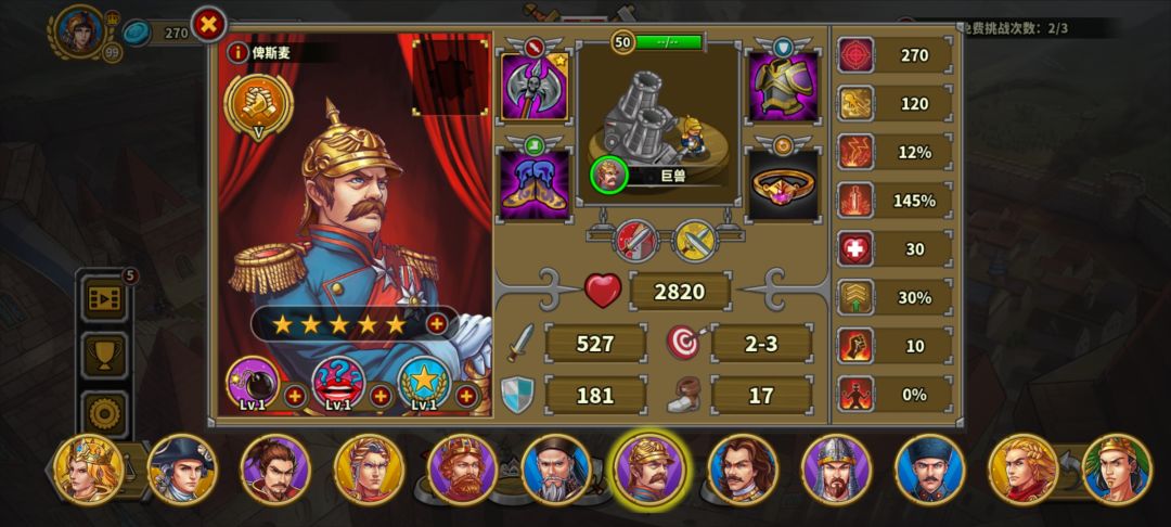 希腊决战过了,希望对一些没有打(觉得很难打一直没动但配置很高的大佬)提个醒,很简单,感觉boss血好少,说一下战况 小兵关平推的时候死了一个李鸿章,就是海上被三炮集火 走最上面的一条路线,第一个精英关,基本全是骑兵,李鸿章真的很爽。(9个怪哦) 后面两个都是1步,2骑,3炮。 boss战稍微有点难,一头牛(3500左右),一个恺撒(目测4000),三头狼(目测大概2500血?) boss的话目测6000差不多,可能更高点,8000。但是会挂混乱(可以放贝当之类的老冤种抗)或者用亚瑟(专武)无视混乱带奶瓶硬抗 我也不知道我玩的啥指,步指,弓指都练了点,不多,但够用。 虽然可能对99%的人没用,但是可能对像我一样每天摆烂的人有点用吧。 顺带说一下,最后打完boss,剩亚瑟,华盛顿,织田信长满血,其他的都战死了。