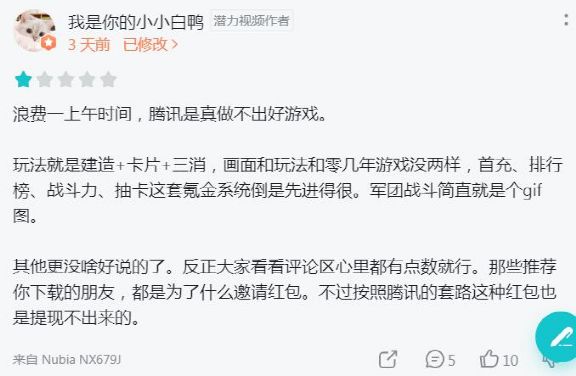 以上种种问题反映出来的都是《指尖领主》对产品定位的模糊。游戏到底想主打什么年龄群体、什么性别群体,都是模糊的。产品定位反复横跳最终在游戏内留下了许多划痕,也让宣发使不上劲,上线之后得到负面评价也就不足为奇。当然普通玩家并不会去区分研发与发行,所以对游戏一切的不满的锅自然都甩到腾讯身上。