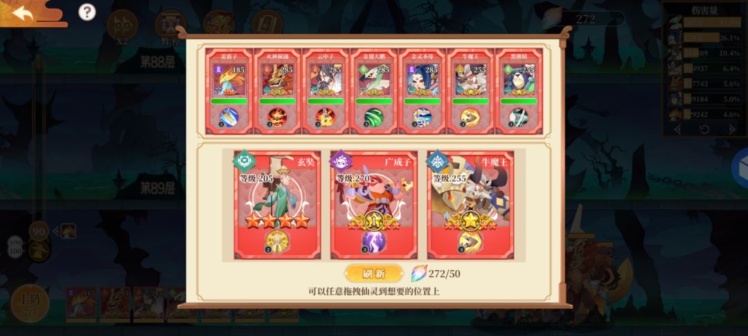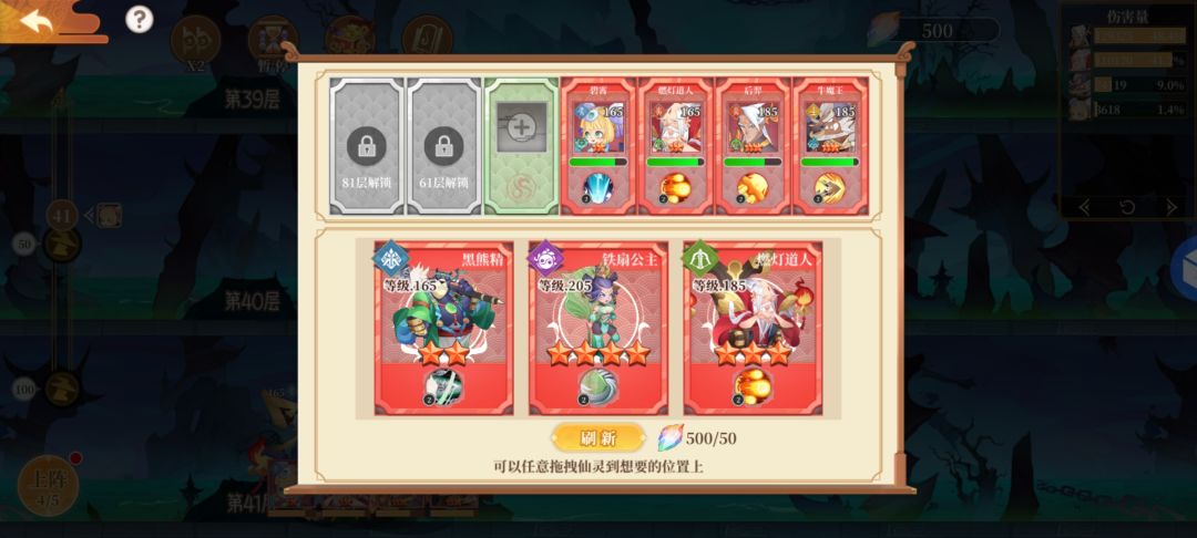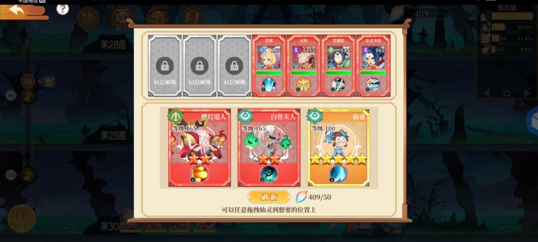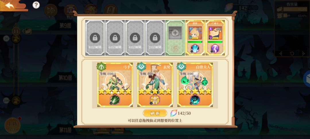 〔后话〕逢9层进行召唤,但中间难免有吃力的时候,可随时点上阵,随机应变,非战斗状态可补充仙灵。