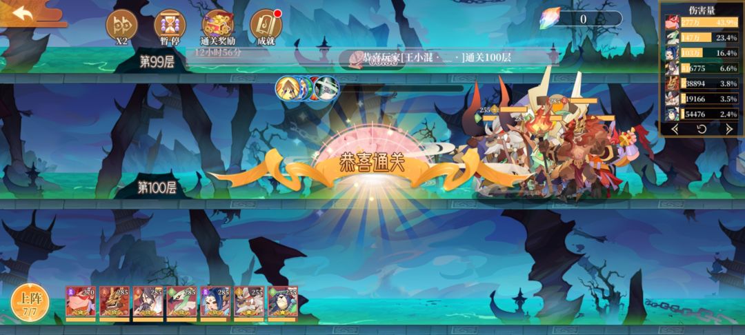 99层——自我感觉输出不太够,刷一只广成当主C。顺利并轻松过100层。