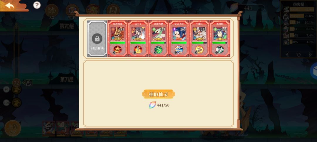 69层——遵循上述经验,过关后,可随意召唤一只,可轻松通过79层。