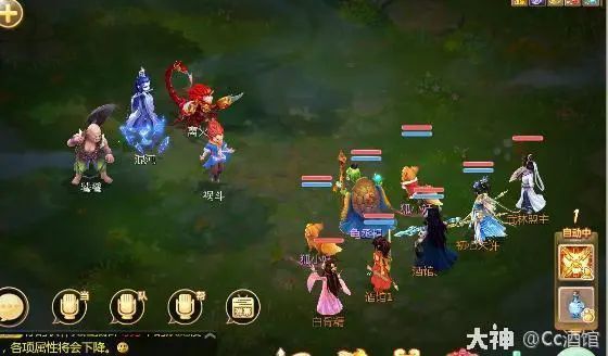 第十关,一转的终极BOSS关卡,这一关的主要攻击单位就是前面这五个了(对应种族对其无伤害),后边的不需要去管他,前面没打死的时候不要去普攻后排(需要在15回合之内打完,不然主怪会放大招),咱们直接对着前排大抽大秒就好,带血宝宝给自己回蓝,在打死前排的情况下去普通攻击对应身后的怪,这样主怪就会掉血,平砍死一个掉30万气血,主怪60万血,要平砍两个主怪就会立刻嗝屁。(比如打死男魔后去普通攻击他身后的女魔主怪掉血30万)。