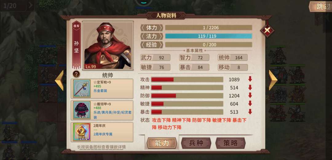 孙坚用了乐进套, 搭配一个2周年+乐进魂。给程普上必闪,防敌人法师。