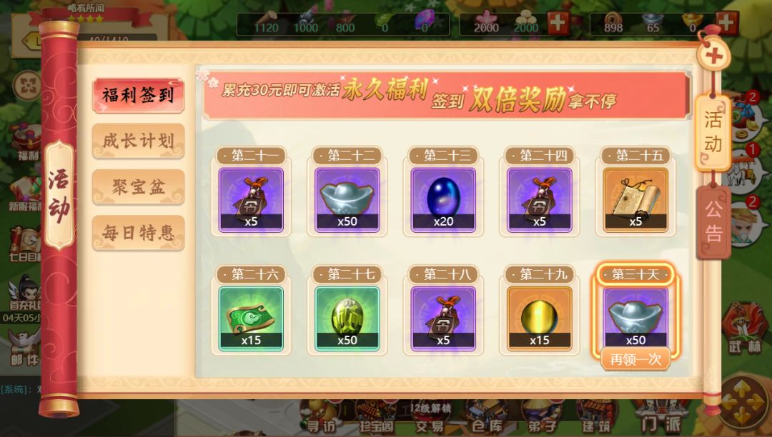目前正在进行“七日签到”的掌门,将直接获得所有奖励,且可领取最新的“十日签到”活动>