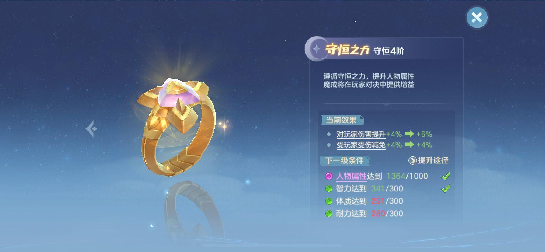 例如这里守恒之力仅差9点体质,耐力仅差28点,则可以适当努力一下,将守恒之力提升到下一个阶级
