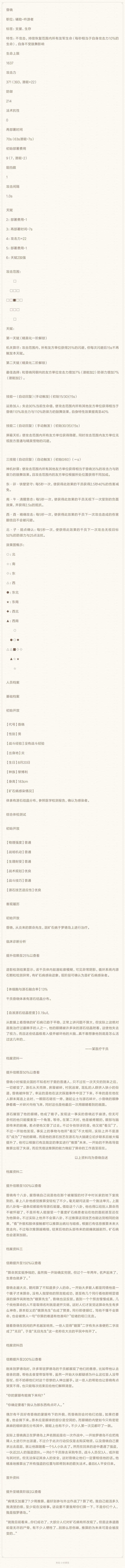 自制干员:算命的瞎子 昏晓(面板与档案)