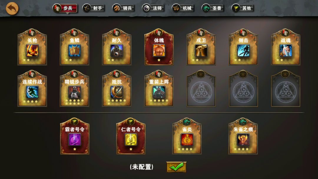 霸者号令(必须有)、农耕术(冶铁术)、战前准备、火箭