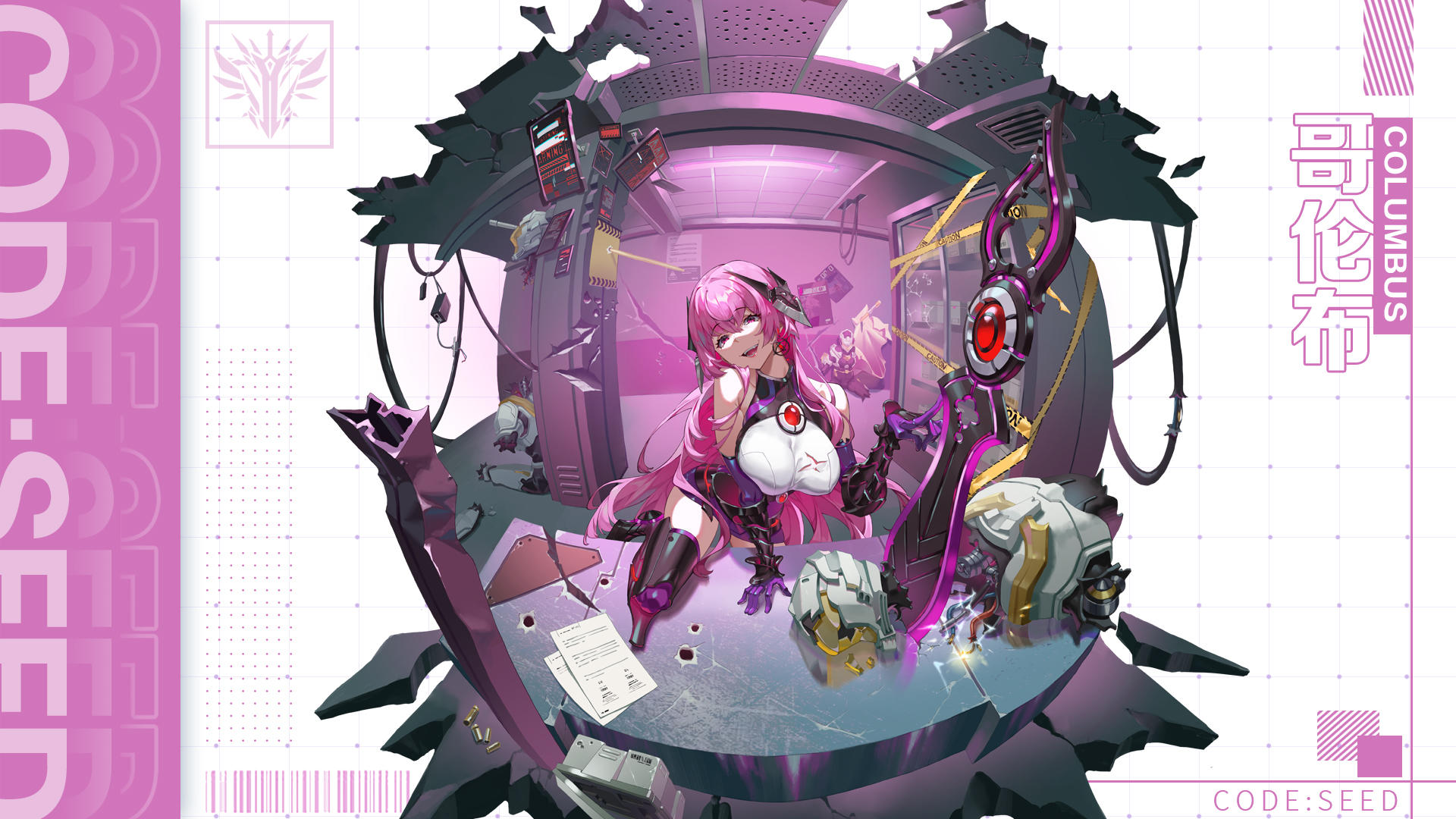 浅紫的眼眸闪烁着戏谑的光芒,嘴角勾起一抹漂亮的弧度,表情更加说明哥伦布无时无刻不在追求“愉悦”。任何敌对目标在哥伦布眼里都是动人的,她挥动身后的武器,出手干脆利落,在追击夹断后抵达残酷的终点,灌浇成最顶峰的美丽!