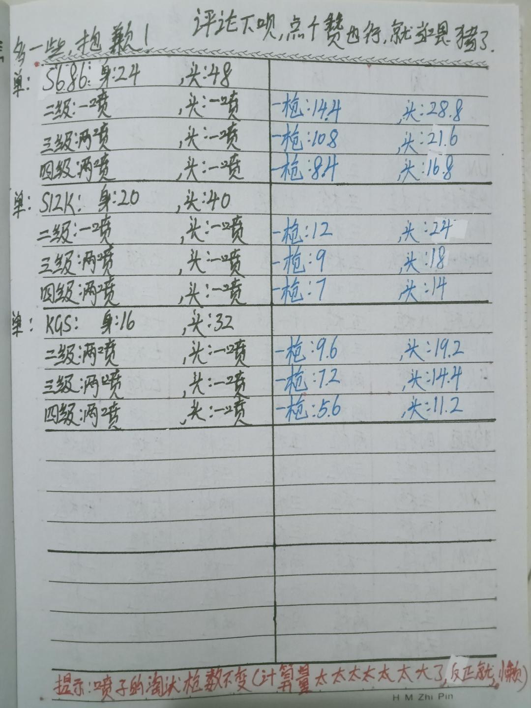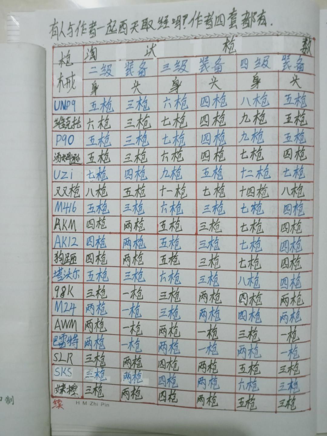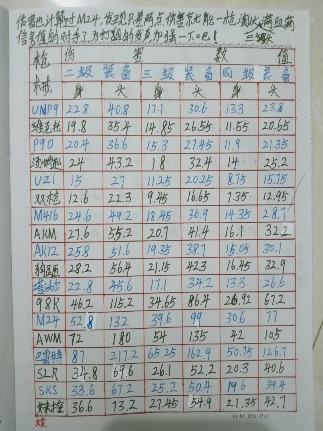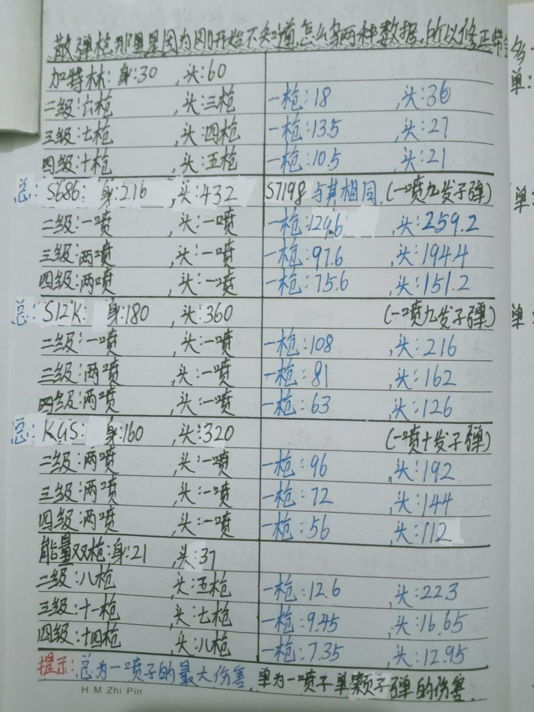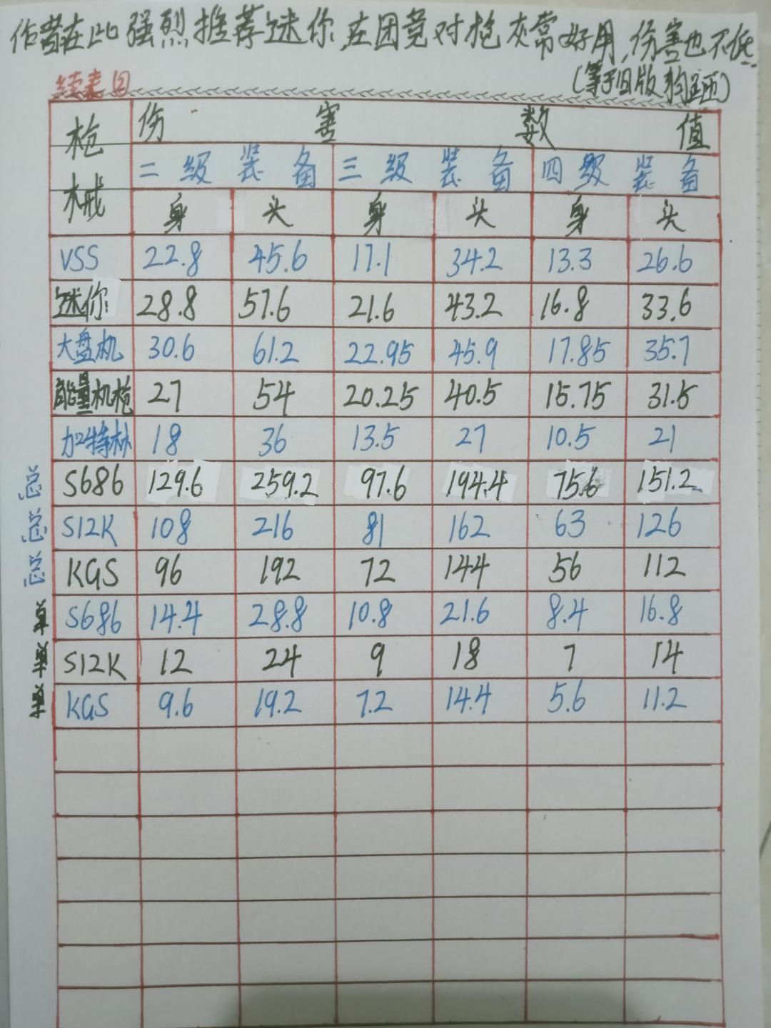 哈喽 大家好 ,由于本人不会剪视频 ,所以,我只能发帖子 ,以下的枪械伤害图都是我写了好久的 ,希望他能对有帮你。