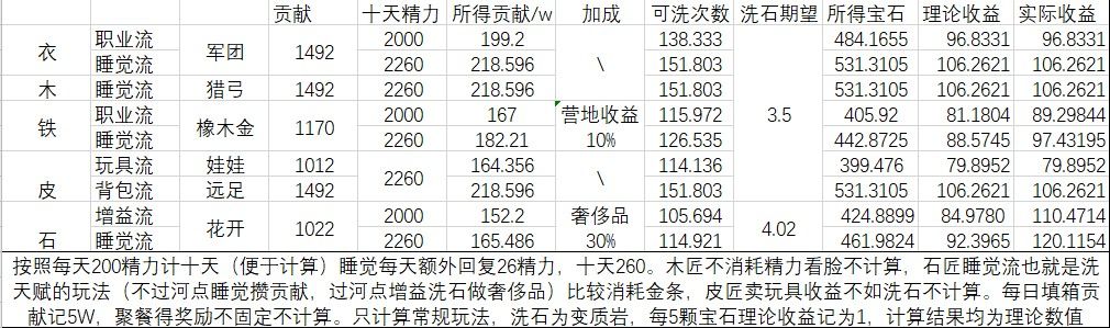 现在大部分人都在13级左右,计算都是理论值,只计算常规玩法,欧非看个人,主要是对各职业收益做对比。没人抬的铁匠目前收益最差