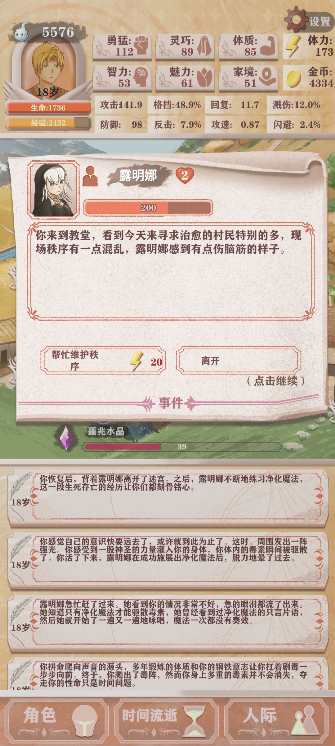 虽然我魅力只sl喂糖(花了60块买糖还得到负面评价属实大冤种),能不能过百随缘,但是游戏中每回合都有1-4个加魅力的点,即修女维护秩序,诗唱班,给小孩喂糖,以及剑小姐给小朋友喂食。当你sl一个点不能满足100魅力时,可以去sl2个或3个,一回合4魅力就看系统愿不愿意给你了另附贝爷一回合下本抢2000金币图