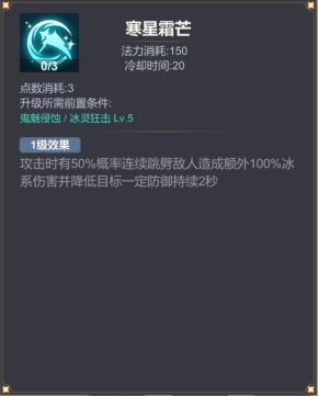 战术动作中的最后一阶动作,寒星霜芒,倍率一般的冰暗混伤,但是后续收益是减防,而游戏中能减防的手段非常的少,仅有部分珍贵装备上存在这个机制,因此这个天赋是可以考虑点满的。