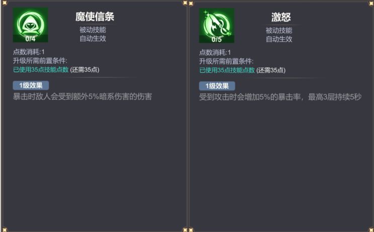 天赋魔使信条与激怒,这两个天赋奠定了安娜对于追伤与反击的资本,激怒提供的珍贵暴击率可以与冰冻追击产生联动,一环扣一环,加满这两项的收益是非常有利于发挥安娜的潜能。