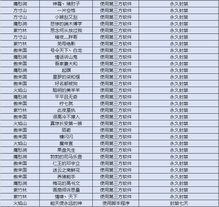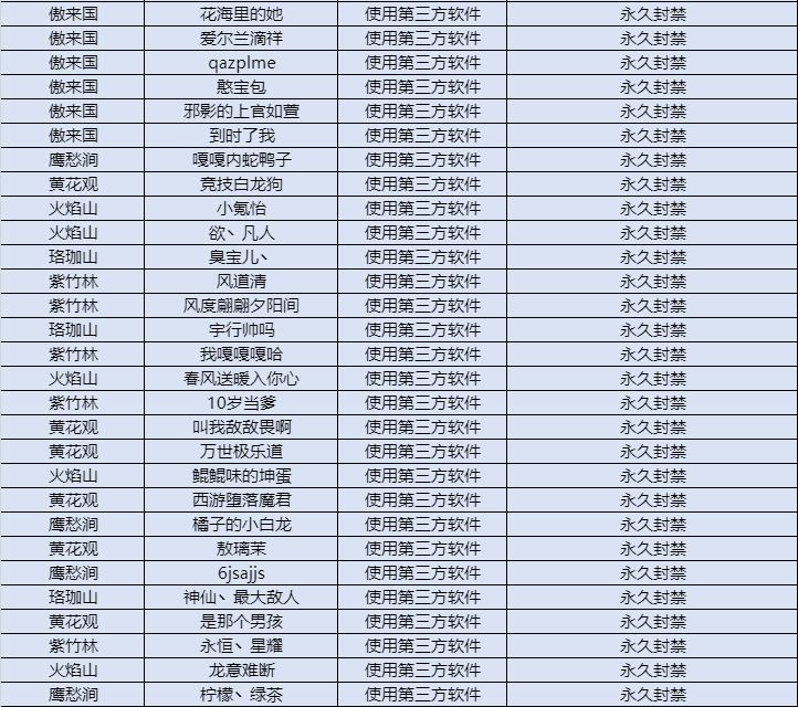 本帖将用于各位上仙举报公屏不当言论、使用第三方软件(包括但不限于除游戏安装包外的脚本、外挂、加速器、美化包等)、卡BUG等违规游戏行为,我们将对举报内容进行核实,并视情况给予禁言1天-永久禁言、封禁角色、封禁账号等惩罚。