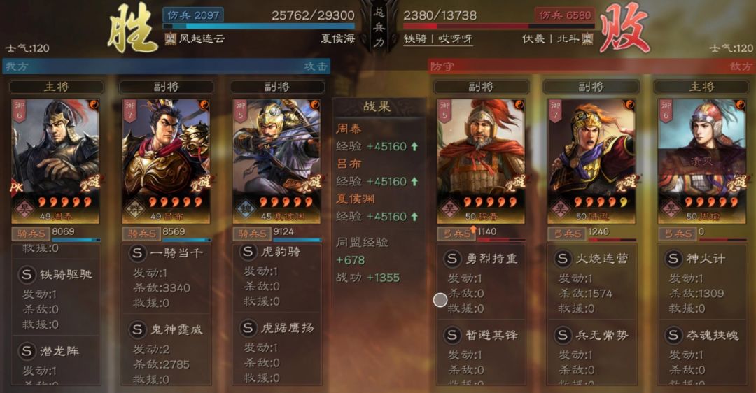 阵容点评:这波打基本满红的吴骑阵容,战损方面也只有八千,还是很舒服的,可以说援助甲+暂避其锋+青州兵的体系对于菜刀队的克制还是很凶的!