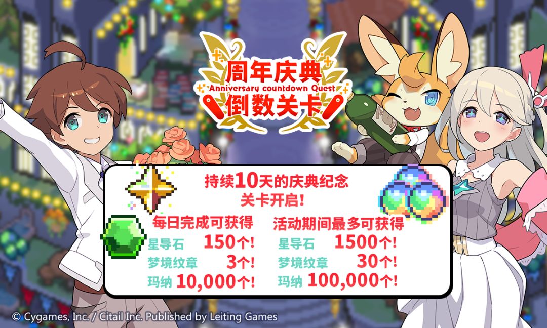 冒险者们还能在活动期间进行周年倒计时关卡挑战,完成每日关卡挑战,即可领取星导石*150和梦境纹章*3,活动持续10天,一共可以获得星导石*1500和梦境纹章*30