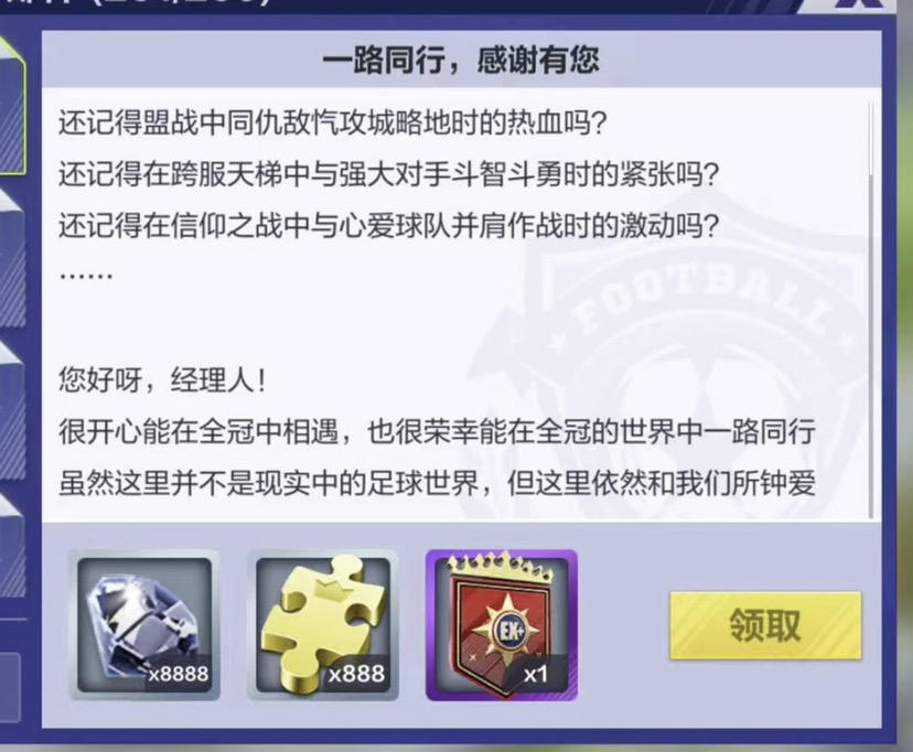不想说什么脏话。全冠4周年,我不知道剩下多少人,可能只有少部分人还在充值,极少部分的人才是你们眼中的香饽饽,为什么不把这个邮件弄成一个活动,vip等级不同奖励不同呢,难道那些白嫖也好,小v也好,都不算陪伴下来的玩家吗?卡牌游戏,战力天花板后都会腻,希望策划好好珍惜吧。