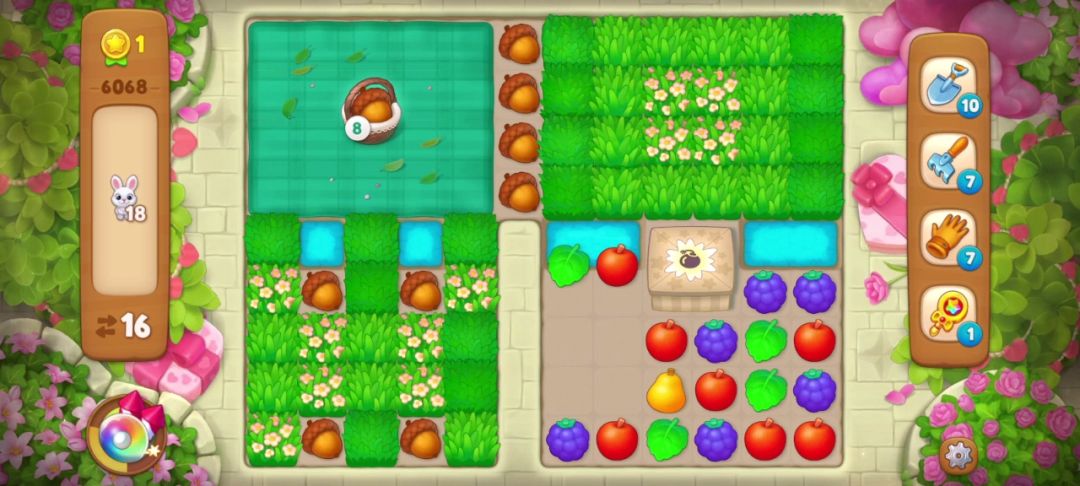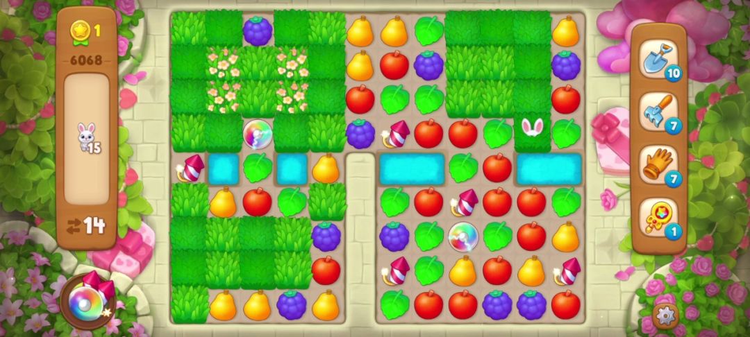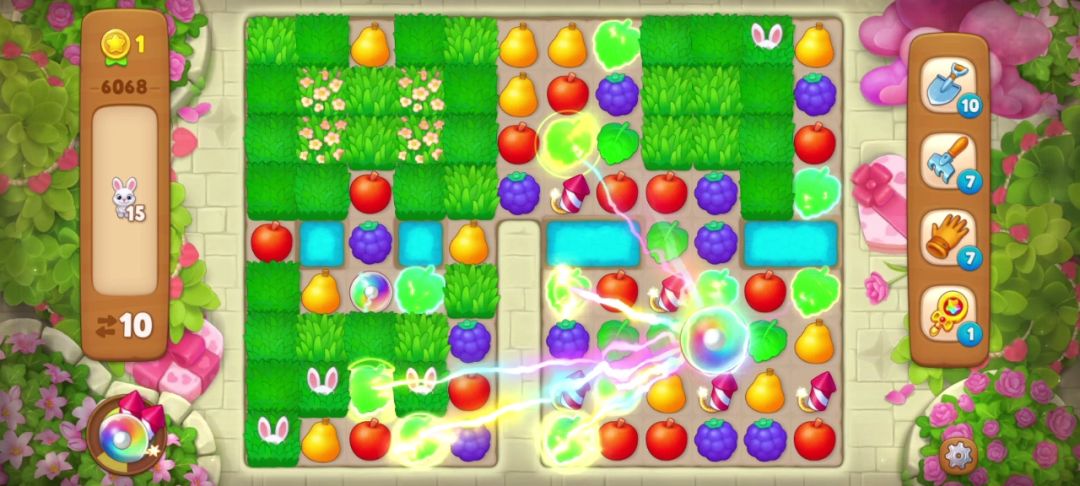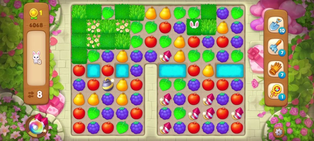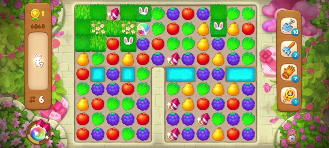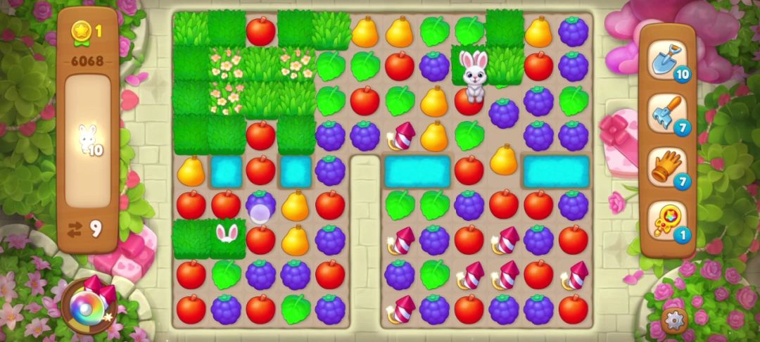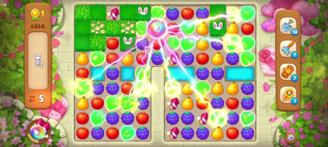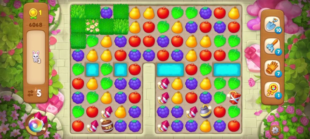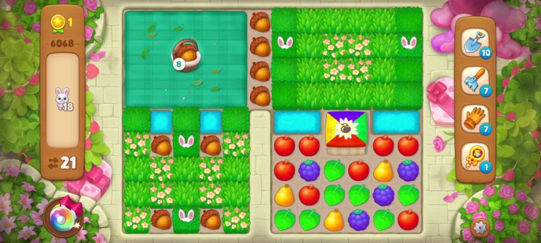 小兔子:在周围匹配即可消除,没有匹配会随机转移到空余的草地里,一般当有深色草地时会躲在深色草地里。