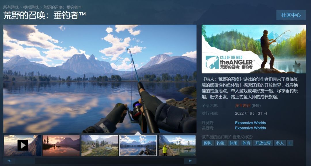 开放世界钓鱼游戏《荒野的召唤:垂钓者》Steam多半差评