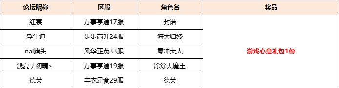 那么恭喜以上的获奖的掌柜,游戏奖励在公布后7个工作日内发送;