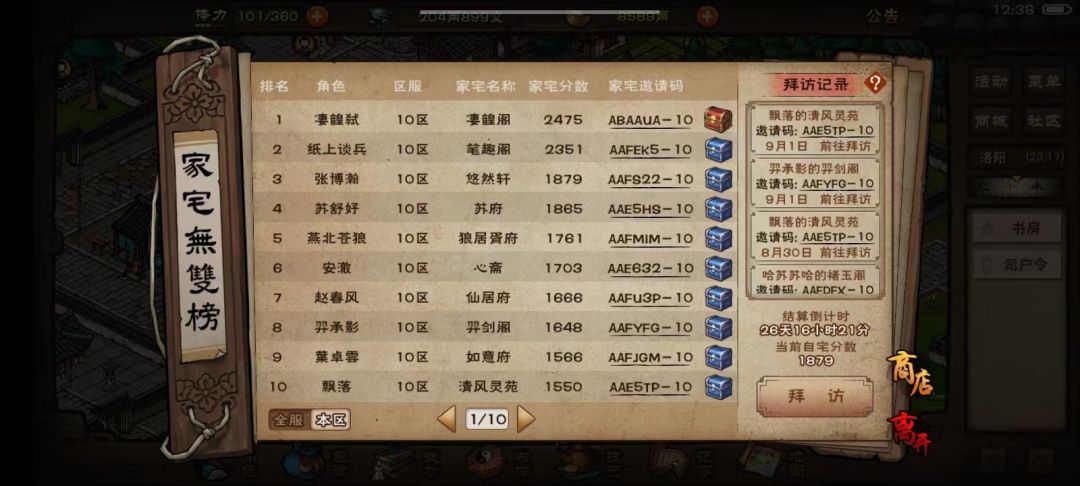 这时积分已经成功激活啦,洛阳(23,17)司户令处点击家宅然后点击拜访,等结算日期(月底28日0:00前激活即可)得到500积分奖励。可以进商店购买顺脉丹或其他需要的物品。