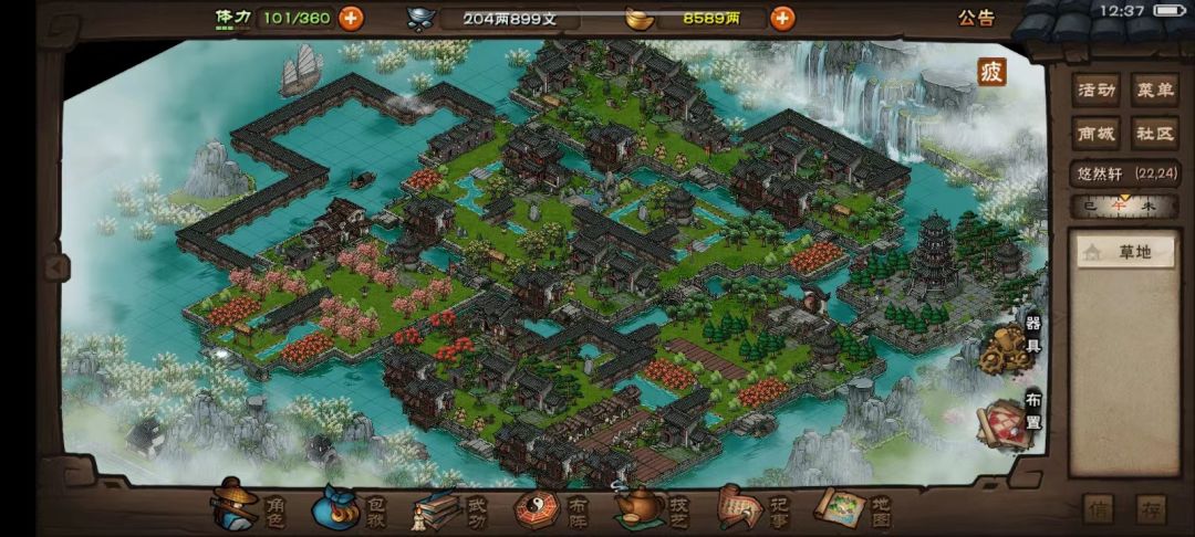 最后等声望达到400点的时候,花1000元宝升级到庭院,建造凉亭和放置蒲团后,就可以给随从打坐40分钟获取一点内修了。