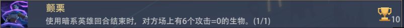 打法:黑暗仪式持续过牌利用被动对藏宝恶龙造成伤害掉落宝箱,宝箱怪攻击为0,掉落6个即可完成该成就。