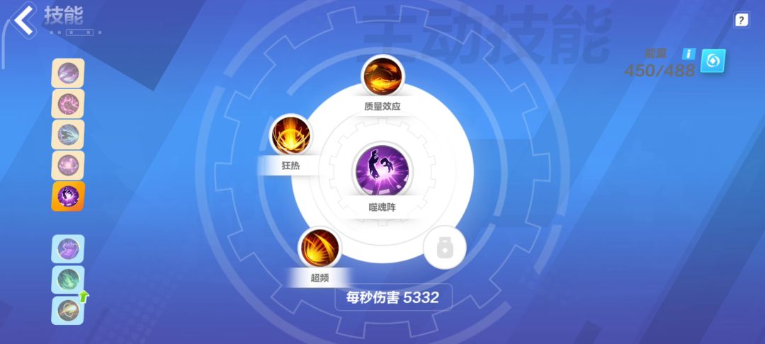 7、噬魂阵增伤一般,主要是加上一个超频用来提高打boss的爆发。(平时基本用不上,可以换成回复药水或者其他防护技能)