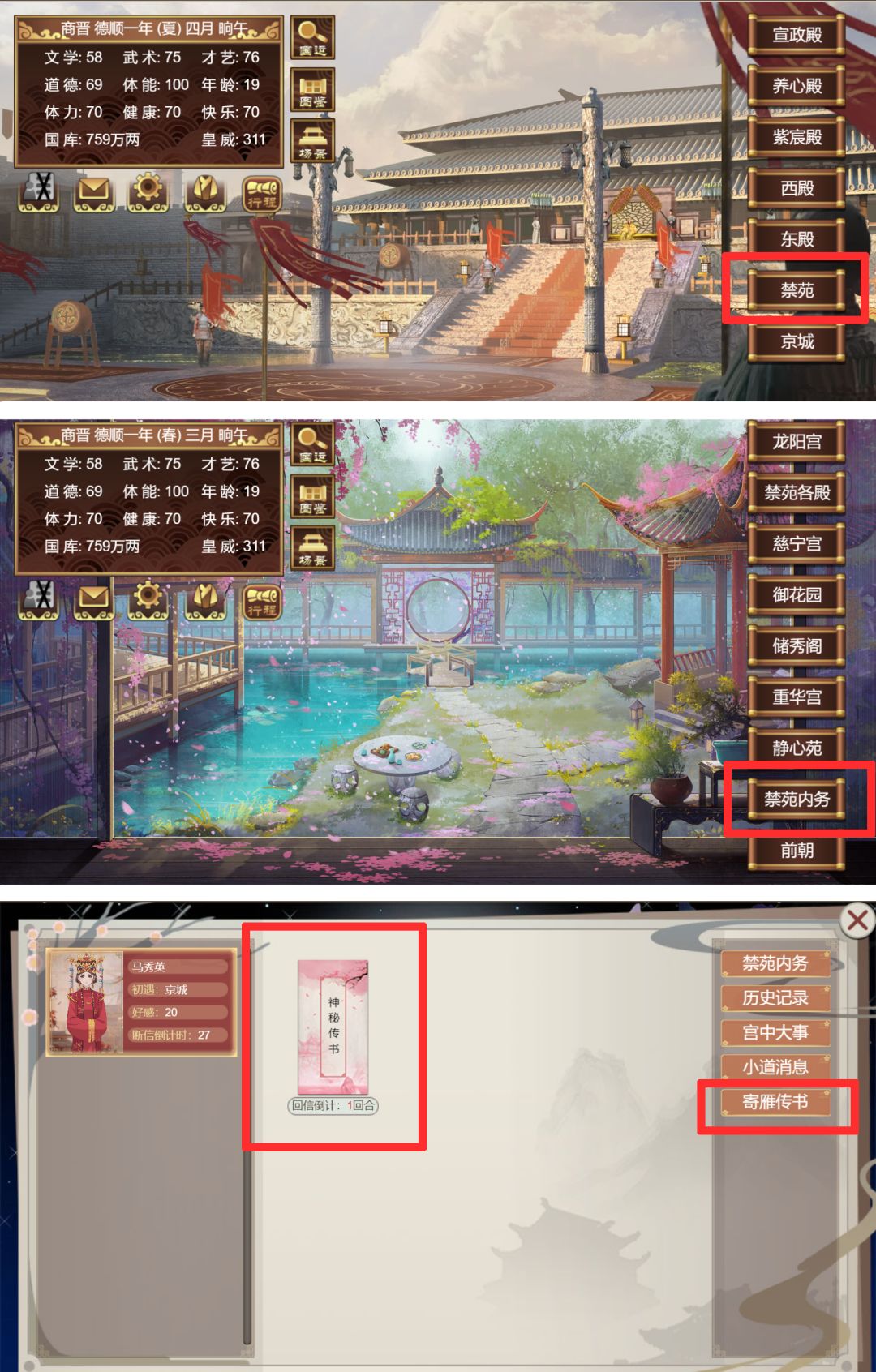 3.第三封信较为关键,看完后记得在【下个月】前往【云湖渡】