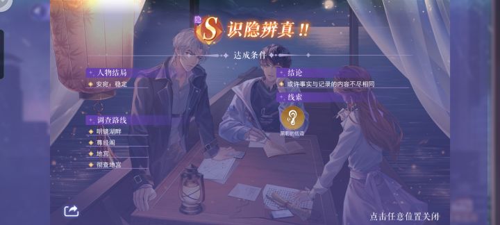(只是S和隐S结局的攻略,要走a结局,一开始选“日落之时”的门票就好了。)