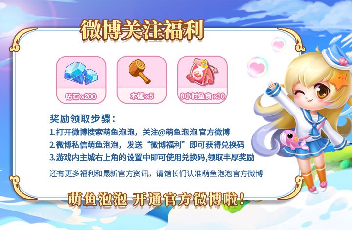 满级摸鱼小助手泡泡现已入驻微博平台,关注有福利!