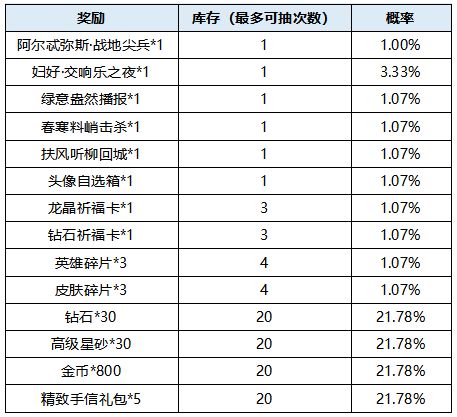 参与魔盒献礼抽奖活动,完成任务获取库存抽奖券,参与抽奖即可抽取妇好·交响乐之夜、阿尔忒弥斯·战地尖兵及其他稀有道具哦!