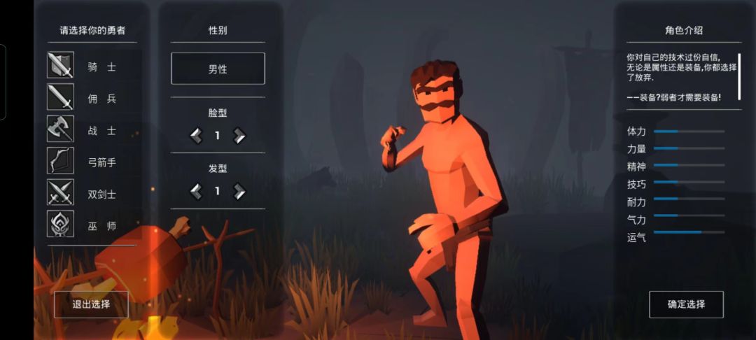 玩过老包的小伙伴们应该知道,如果说其他职业难度为5,无用之人的难度就为15。要是某些玩家对于预设的难度感到不满足,想增加挑战,可以选择放弃属性和装备,正如角色介绍所说——“弱者才需要装备”。(虽然基本人人都无法逃脱被锤的命运,新版我更是用了两个小时才刚摸到第二个boss)