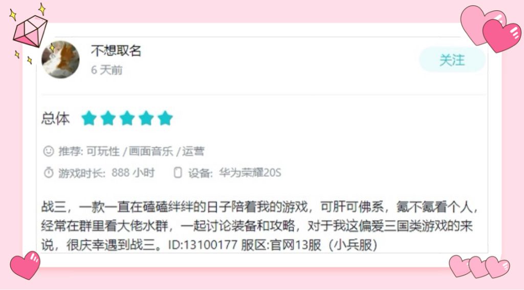为衷心感谢在评论区用心写下真实游戏感悟的主公,从下月起,我们每月初会精心挑选出上月主公们的优质评论并在TapTap论坛公开展示分享给更多玩家,同时献上【精选礼包】奖励。欢迎各位主公在评论区积极写下您对《战棋三国》的真实感受、心得想法亦或精彩故事分享,即可参与#精选留言回馈有奖活动#,同时您的宝贵建议将很有可能被采纳进之后的版本当中。