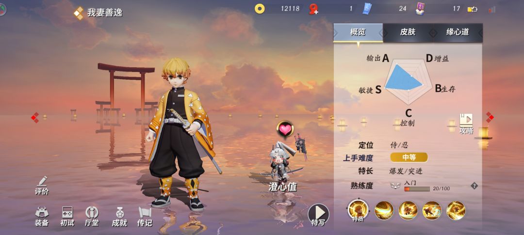 强化状态下,善逸身上会有金色闪电特效,血条下方出现强化倒计时读条被动2——听声辨位。视野范围外(草丛里)有式神移动或者释放技能,会有波纹反馈。