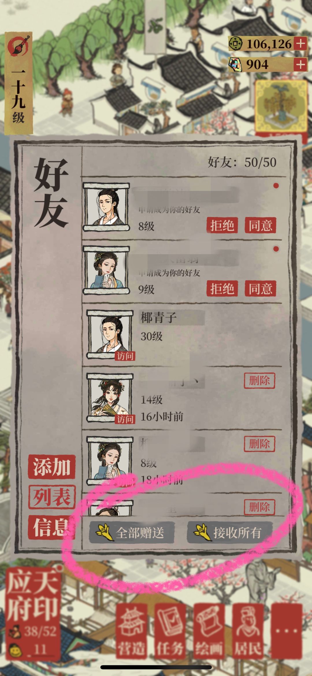 1. 加满50位好友后,每天稳定获得300-500的友情点(每位10点)