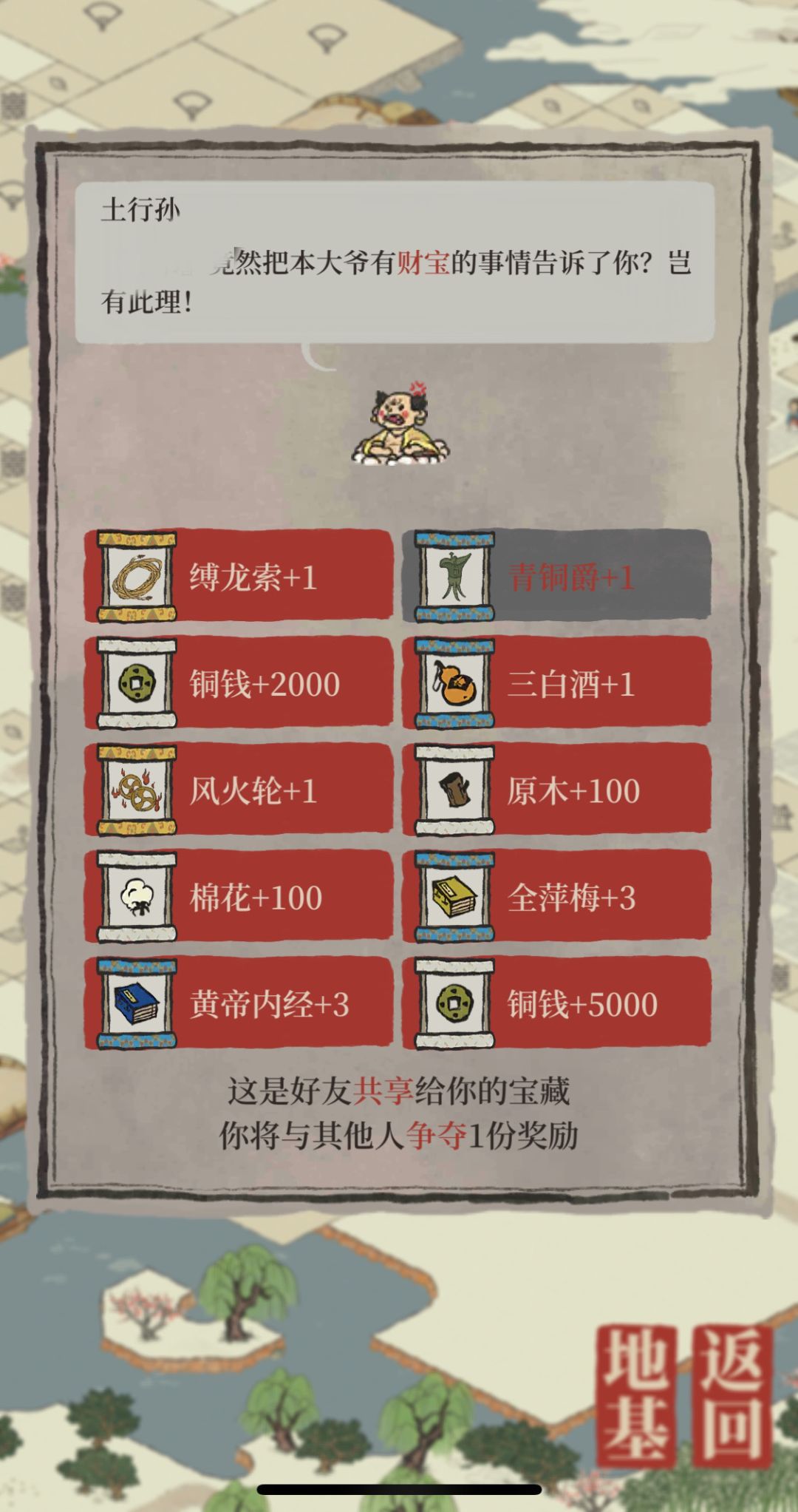 1. 土行孙会随机出现在城里,发现后自己可优先拿一份奖励,之后可分享给好友(最多选9位)