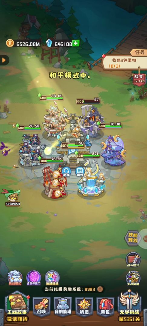 2.新圣物斧头(无敌)大幅降低了过关难度,人手必备(主塔在中间叠伤害就是了,不用斧头),没有橙色就用紫色蓝色。