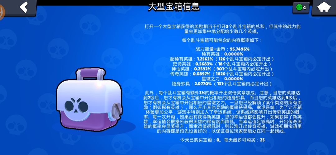 下面是酋长我的宝箱概率,已经准备吃史诗角色的保底啦~(11111截图留念,一不小心打过头,送了一把第八名,截完图打回去了哈哈哈)
