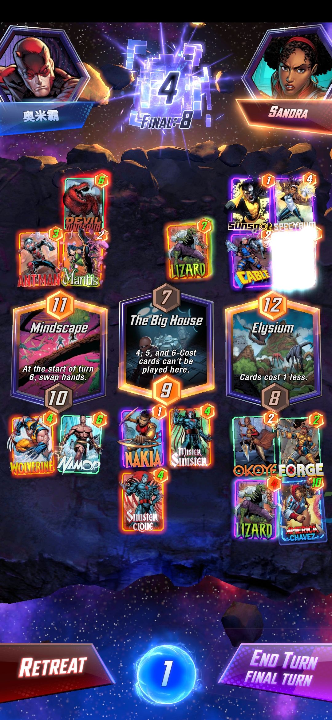 最右边地点的左上角那张黄色的牌,如果他最后一回合不用能量,骂她最多就会+8分,