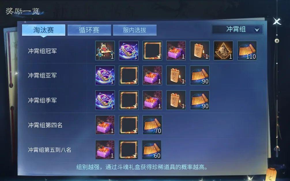 斗魂坛跨服比赛的冠军队伍可获得冠军奖牌、专属坐骑等奖励,同时斗魂坛冲霄组冠亚季军所有成员均可获得奇绝·星霜变,使用后将获得星霜变主题的100绝技特效外观。