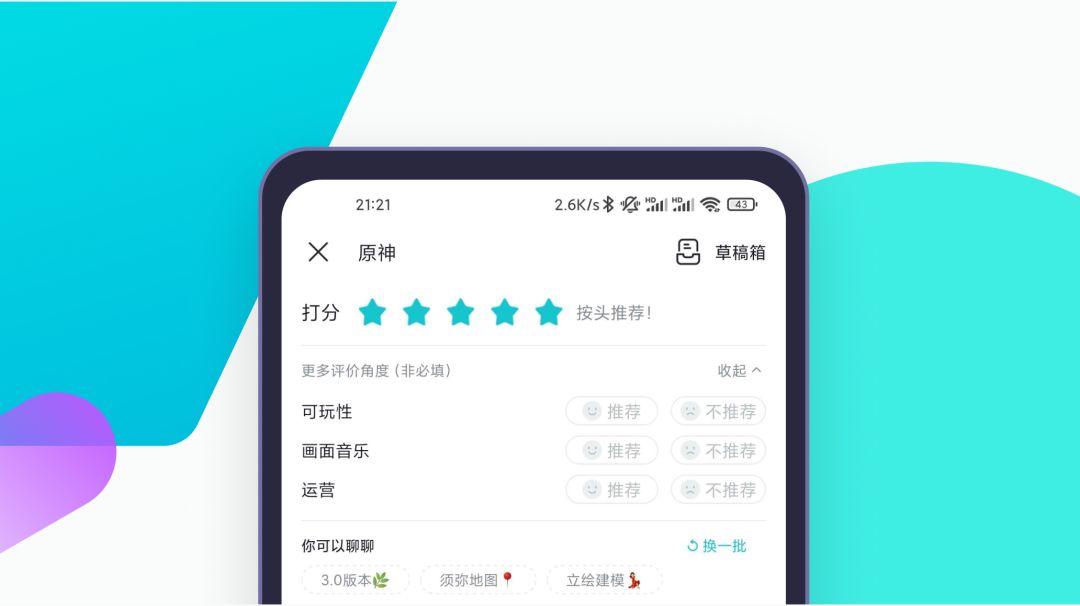 希望能通过这个功能,给到想创作评价,却一时不知从何下笔的朋友们一些引导和参考,让大家写出来的评价更有用、更生动。