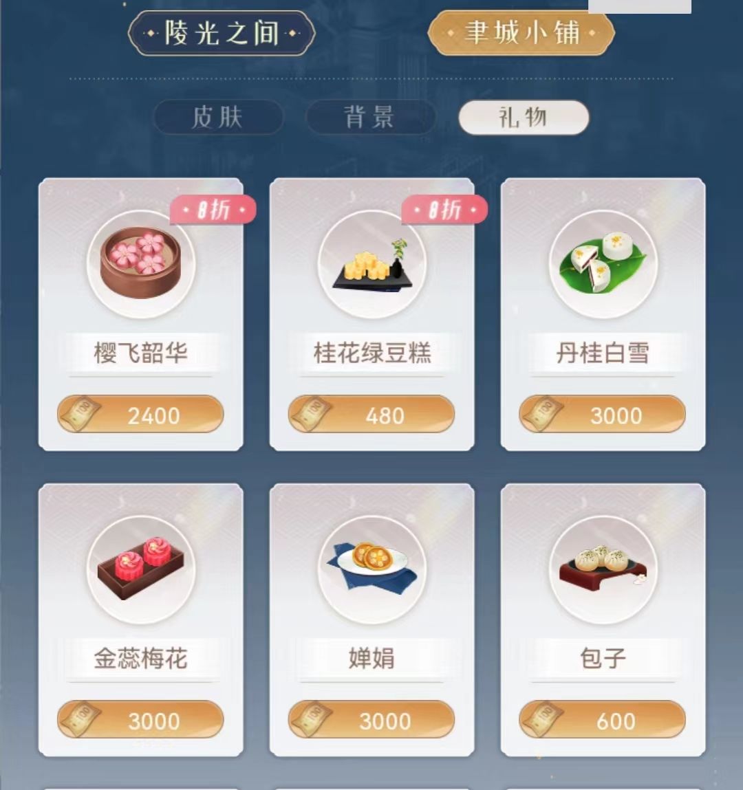 【樱飞韶华】、【丹桂白雪】、【金蕊梅花】、【婵娟】四种专属月饼。将它们赠送给喜爱它们的神仙大人吧❤
