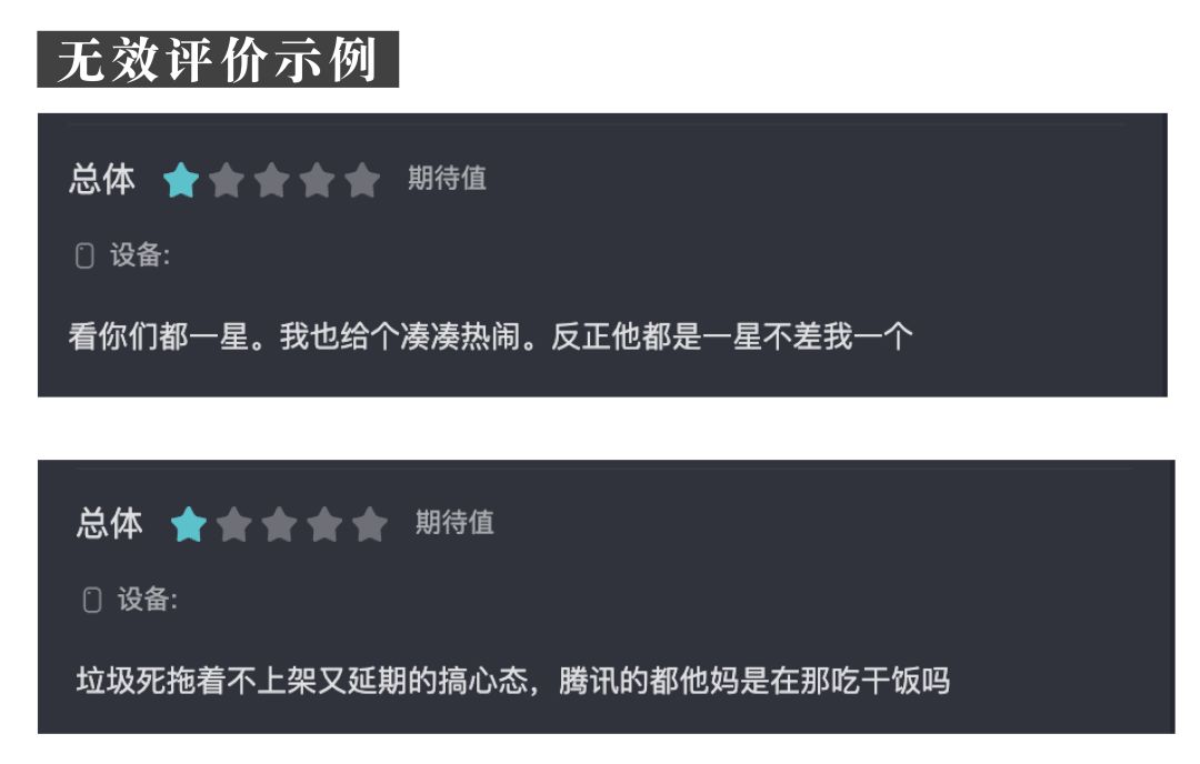 2.评价内容与游戏本体完全无关,例如不提及游戏纯表达情绪的内容等。