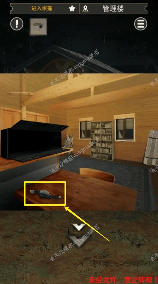 33.管理楼,使用【钥匙】进入一楼,拾取盒子中的【背包】。