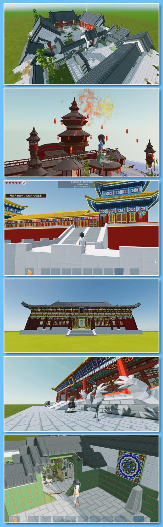 利用简单易上手的《艾兰岛》可视化编辑器,学员们创造了不少制作精良、带有传统文化特色的3d游戏作品,实现了用游戏向大家展示东方特色文明风貌,打造“创意中轴”作品,为北京中轴线申遗助力的目标!